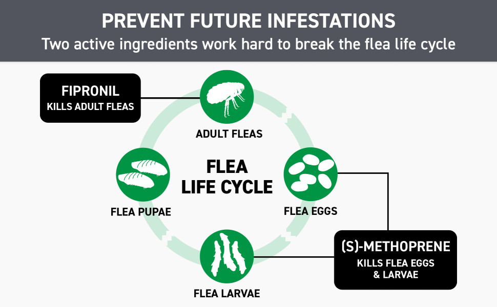 Dual Active Ingredients - Fipronil and (S)-methoprene: Formulated with two active ingredients, fipronil and (S)-methoprene, this treatment disrupts the flea life cycle. It not only kills adult fleas but also targets eggs and larvae, preventing the development of new infestations.